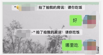 拍了拍我的笑脸:说真好看;拍了拍我的 小脑瓜然后变成猪;拍了拍我的 双下巴并数了层数;拍了拍我的 良心 啊 好像没有;拍了拍我的 肩膀并叫了声爹;拍了拍我的 肩膀说去爬山吗;拍了拍我的 小脸并亲了一口;拍了拍我的 圆滚滚的肚子;拍了拍我的 头说真是个天才;拍了拍我的 小屁股说真翘;拍了拍我的 腰说好细;拍了拍我的 屁股并且羞红了脸;拍了拍我的 肩膀叫了声爹;拍了拍群主的脑袋;拍了拍猪屁股;拍了拍猪脑袋。