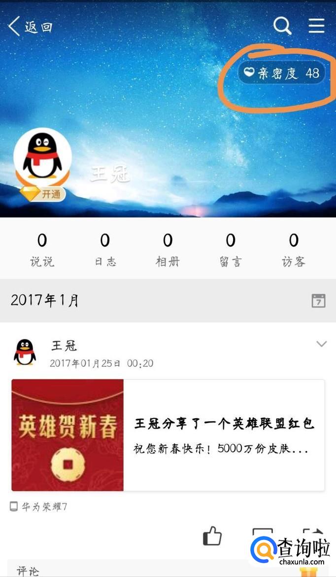 在好友的QQ空间上方可以看到有个亲密度的数字,点击进入亲密度页面