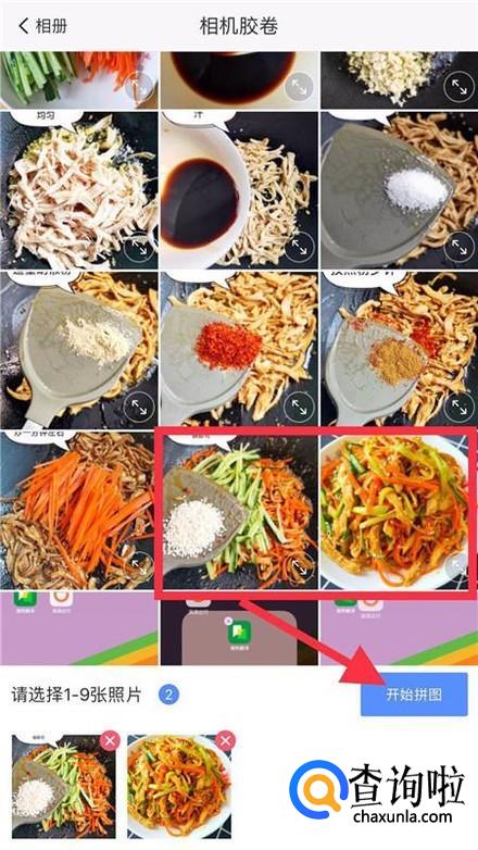 接着选择我们想要的两张图片并点击开始拼接。