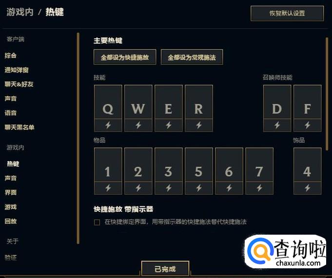 点击热键,可以看到全部设置为快捷施法和全部设置为常规施法。