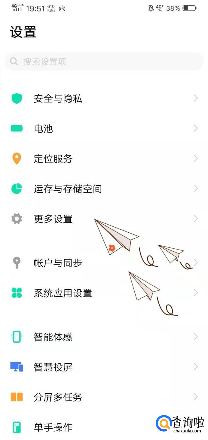 做完以上步骤如果手机还是震动的话, 就返回到"设置"页面, 在该"页面"可以找到"更多设置"这个菜单项, 点击进入。