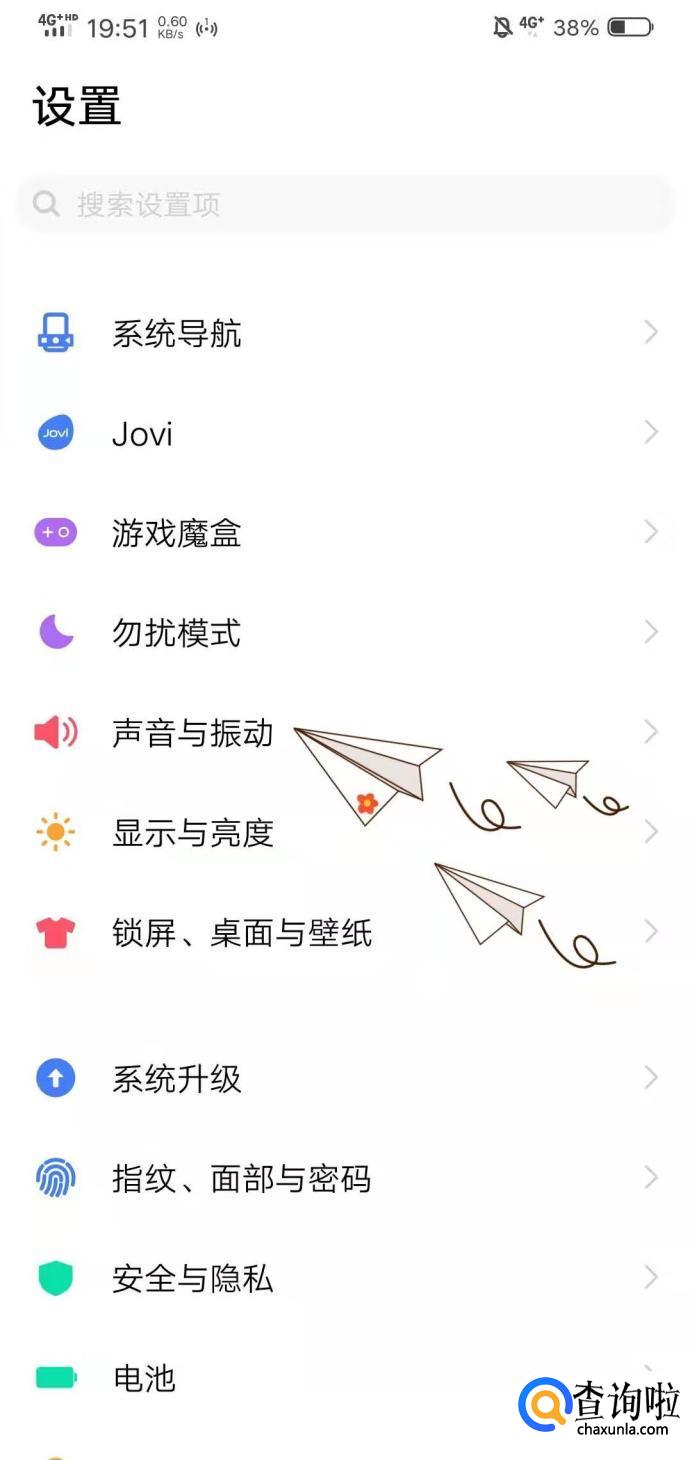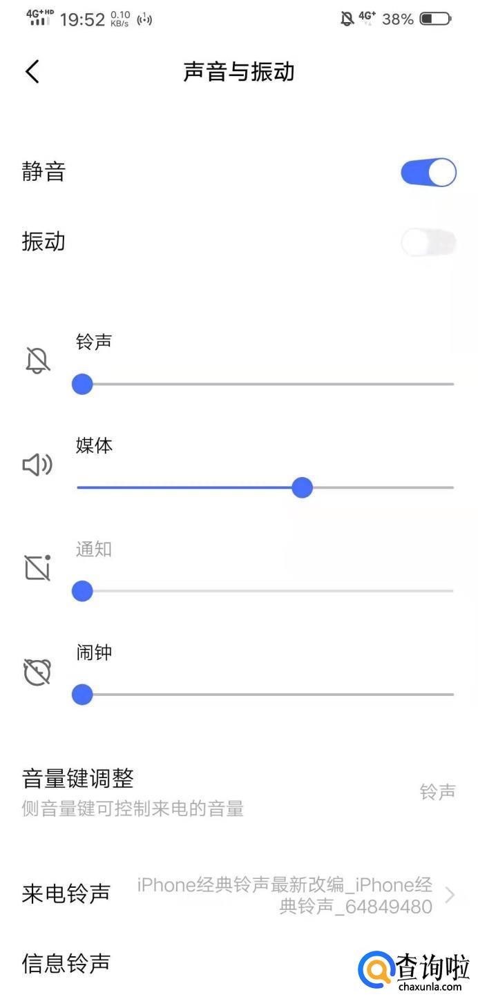 在"设置"页面找到"声音与振动", 点击打开"声音与振动"页面,自己动手调节就行。