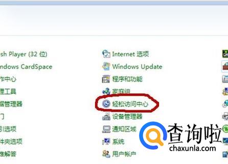 在控制面板里可以看到各种功能图标,从中找到“轻松访问中心”,点击打开。