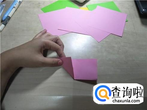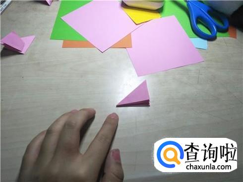 首先将一张正方形的纸片沿着中轴线进行对折,对折之后不要展开。
