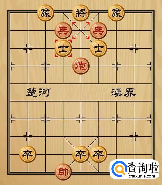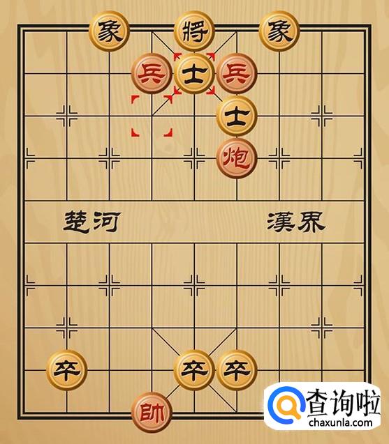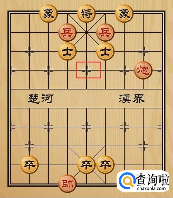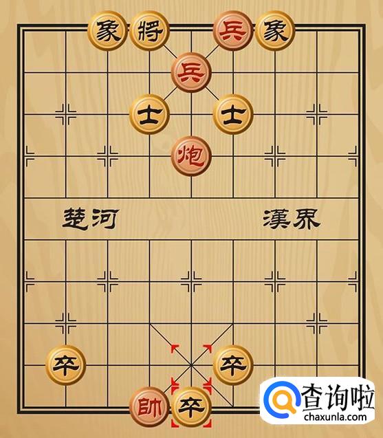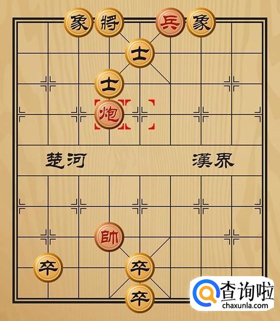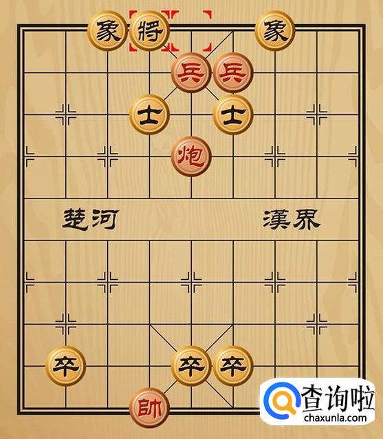 红方兵六平五将军(这里是兵和炮同时将军),黑方只能将5平4躲避。