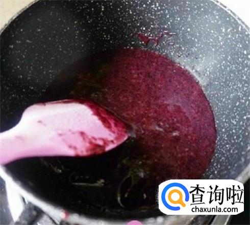 等到你看一下蓝莓汁收缩了,变得浓浓的时候,你自己尝一下口味,很酸的话加点白糖熬溶化就可以了,放凉装起来放冰箱里保存起来。