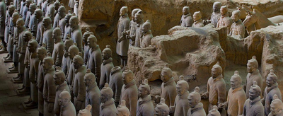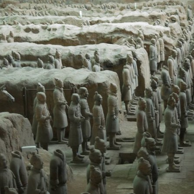 兵马俑(即秦始皇兵马俑,简称秦兵马俑、秦俑)位于今陕西省西安市临潼区秦始皇陵兵马俑坑内,列入世界遗产名录、世界十大古墓稀世珍宝之一,被誉为“世界第八大奇迹”、全国重点文物保护单位,是中国古代辉煌文明的一张金字名片。