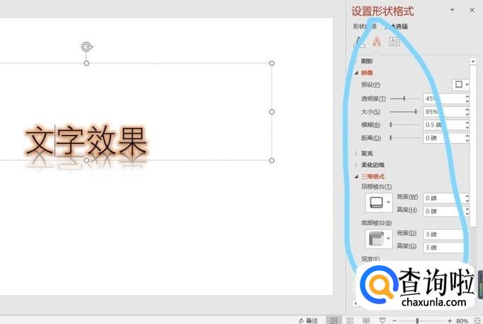 点击文字效果以后下方会出现一些文字效果设置的参数,按照自己想要设置的文字效果设置好参数