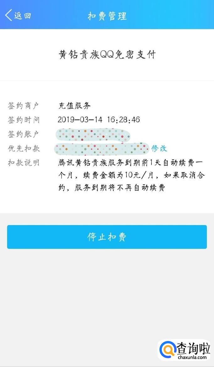最后点击“停止扣费”即可取消QQ黄钻的自动续费
