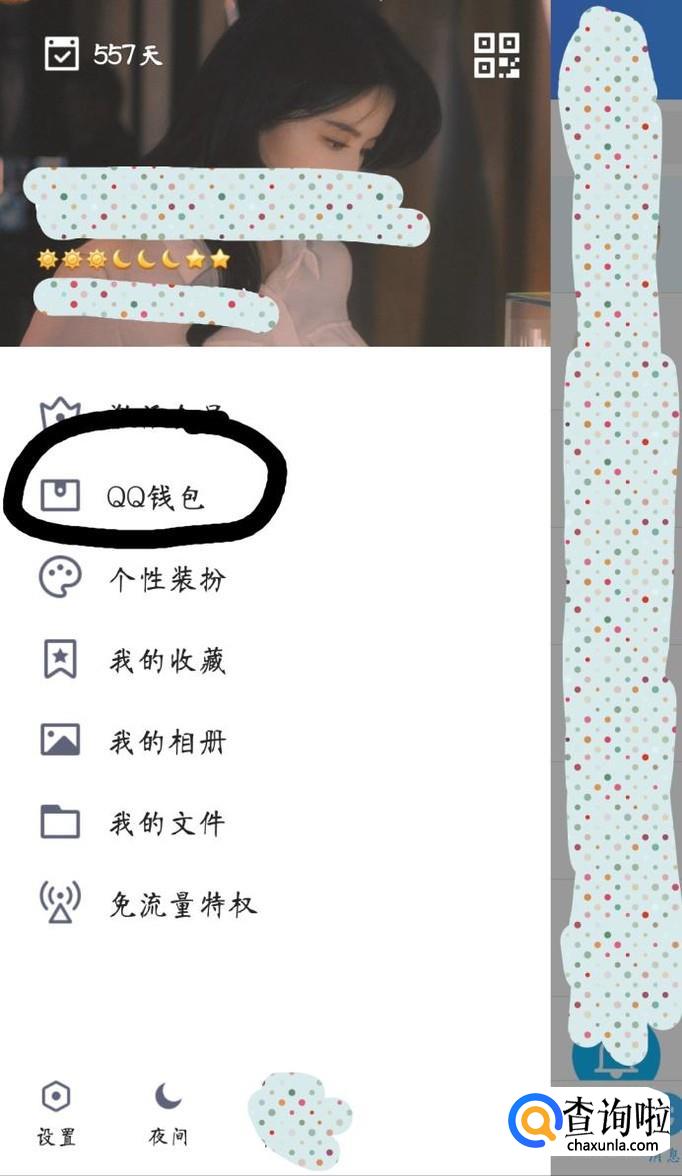 首先在QQ的资料卡中找到QQ钱包,点击进入