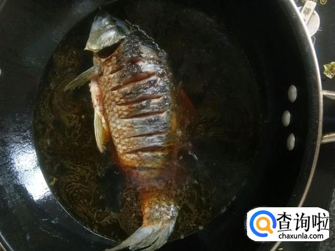 锅中留下适量原汤,加入姜末、绍酒、老抽,并并轻轻搅拌,待汤汁沸腾后放入鱼,煮至1-2钟盛出。