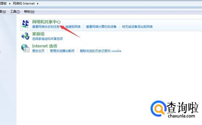 进入到网络和Internet界面后,点击“网络和共享中心”进入