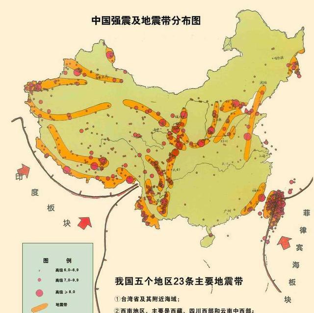 我国属于地震多发国家,历史上伤亡人数最多的地震(1556年陕西关中大地震致死人数高达83万人)就发生在我国,一些世界知名的破坏性大地震我国也发生过不少,如山西洪洞大地震、山东郯城大地震、宁夏海原大地震、河北邢台大地震、河北唐山大地震、四川汶川大地震等,但是我国国土广阔,面积达960万平方公里,并非所有的地方都是地震多发区,而要了解我国哪里地震发生机会多,哪里发生的少的话,其实看一看我国的地震带分布图就知道了。