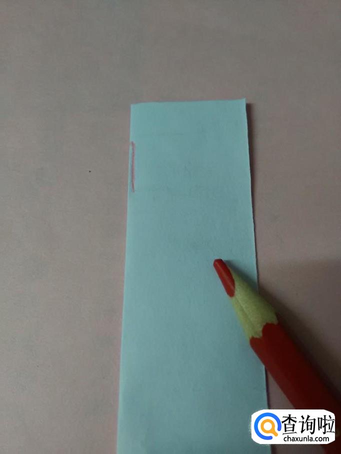 用笔在纸的左侧画一个细长条,表示灯笼提绳。