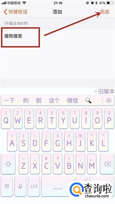 最后输入你想要的短语并点击完成就可以了。你学会了吗?赶快动手试一试吧。