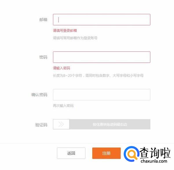 然后填写相关信息并点击注册,如下图所示。