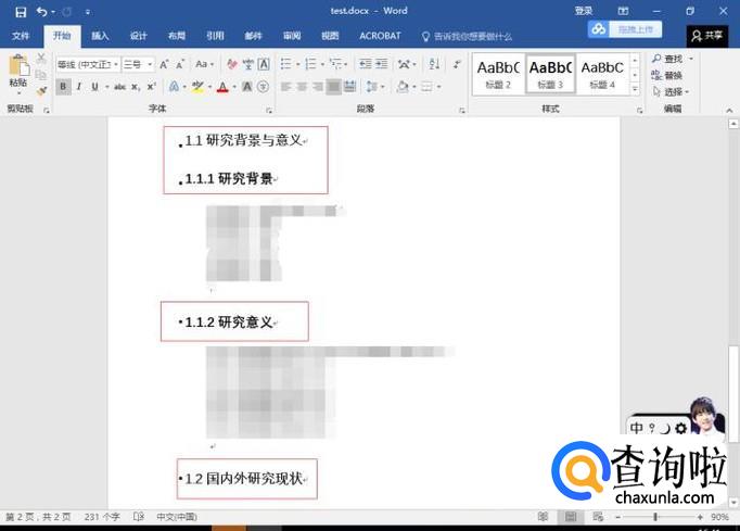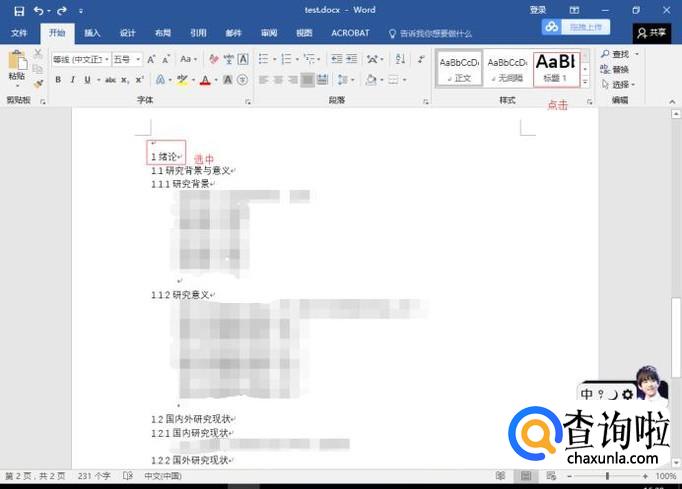 现在我需要使用word的标题格式对标题行进行设置。在"开始"菜单栏的右侧部分,有对应的1,2,3级标题。选中需要设置的标题与目标格式即可设置完成。