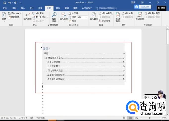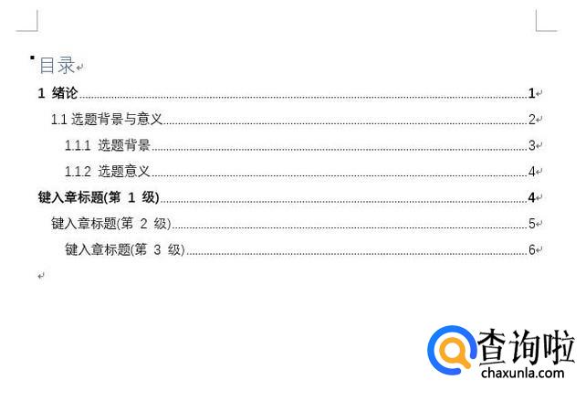 接下来,依次点击引用->目录->自动目录1(选择你需要的目录格式),就生成了你需要的目录格式。