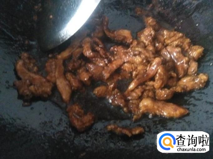 把瘦肉倒进锅中之后一定要快速的翻炒,不然很容易粘锅,快速翻炒几下变色后就差不多熟了。
