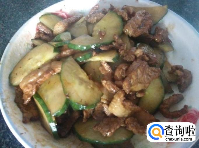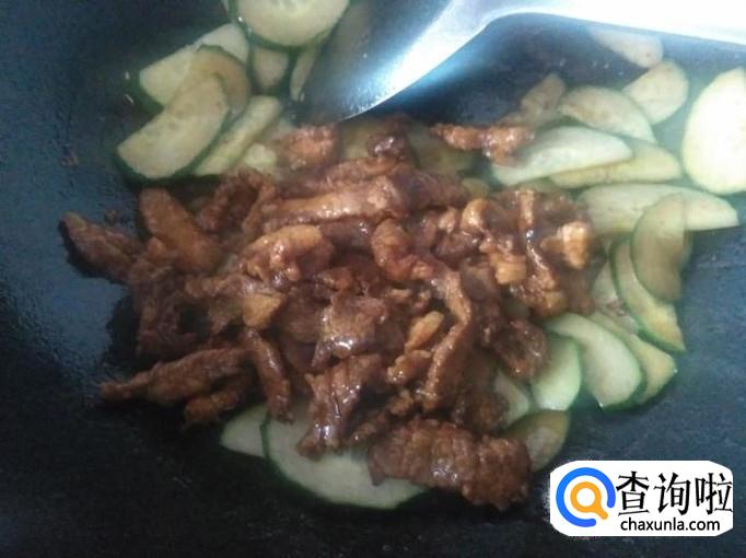 黄瓜炒得差不多之后马上把已经炒好的肉倒入锅中和黄瓜一起进行翻炒,这里翻炒两下就可以直接关火了,非常下饭的一道家常菜黄瓜肉片就完成啦,希望大家都能学会,做给你爱的人吃吧!