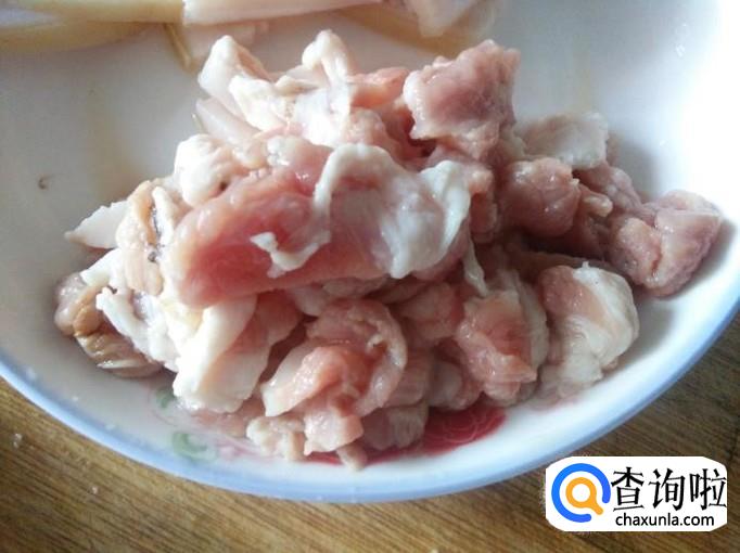 瘦肉同样切片,小编建议在切之前放到冷冻层冰一会,这样拿出来的瘦肉特别好切,薄厚也容易把握。