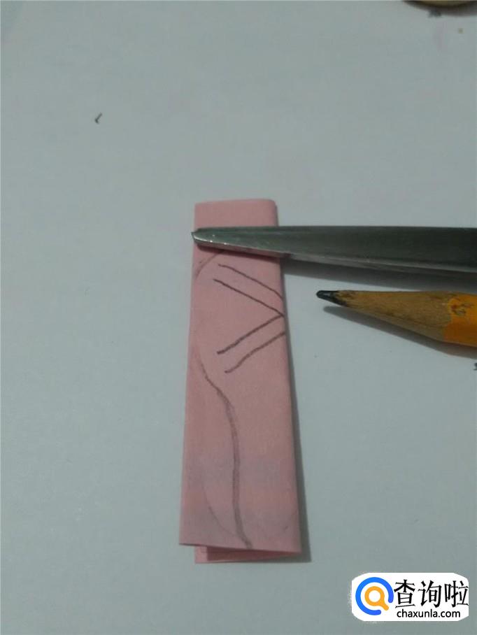 再用剪刀把两条双直线剪空,左端要留一小段不剪。