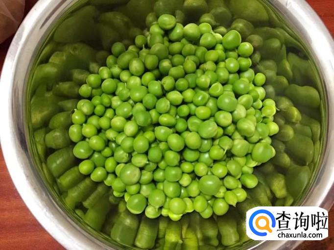 买来新鲜的带壳豌豆剥出豌豆粒,用清水过滤几次,滤掉杂质后捞出沥干水分,备用。
