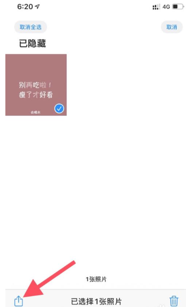 4、选择想要恢复的私密照片,再点击左下角的分享图标。