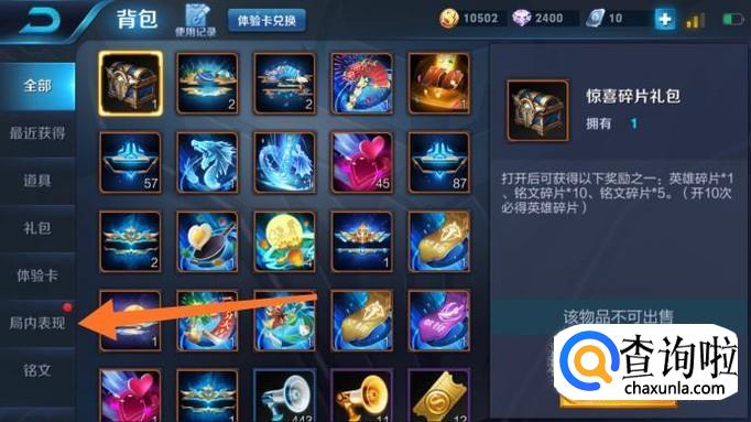 在这里可以看到很多道具,点击左方的“局内道具”。