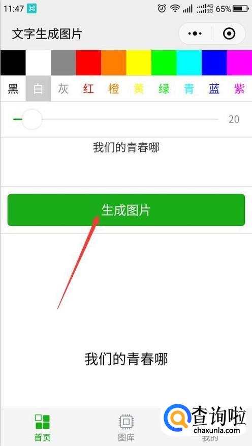 在搜索框输入文字生成图片,进行搜索,找到后点击文字生成图片小程序。