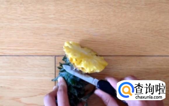 将菠萝的头部切下来,也就是长了叶子的部分,这部分是最有营养价值的。记住切菠萝头部的时候不能带有果肉哦,因为在栽培的过程中有果肉容易腐坏掉。