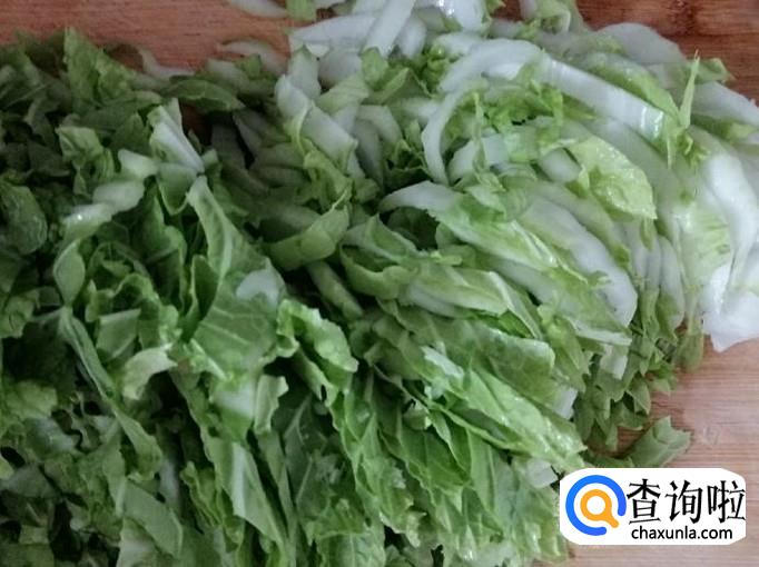 取适量新鲜的白菜,用清水把白菜洗净,然后把白菜切丝待用,最好白菜叶和杆单独放。