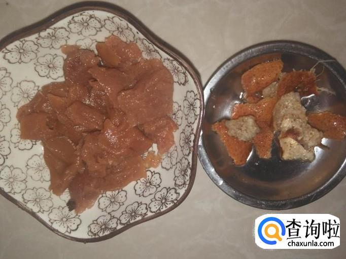 把酸梅抓成梅泥,陈皮撕成碎片。
