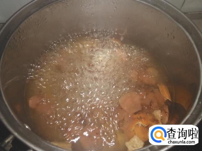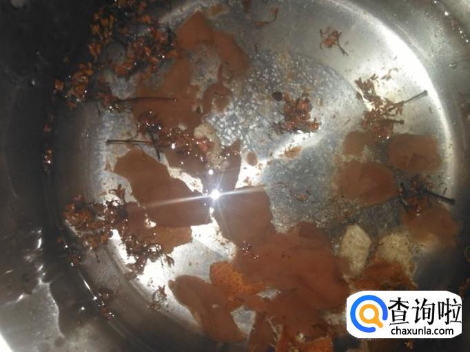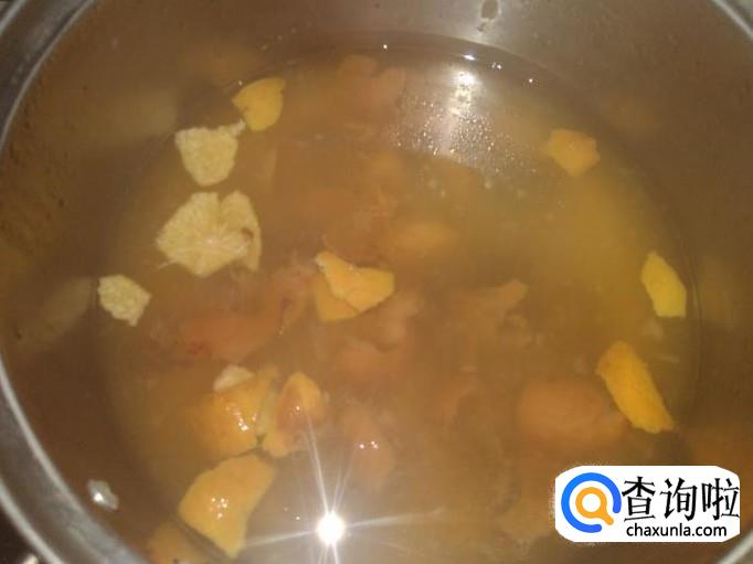 用小锅装3碗水,放酸梅、陈皮、桂花进去。