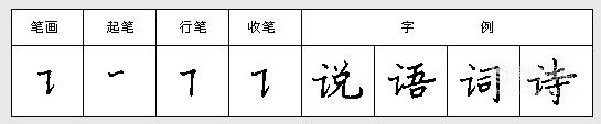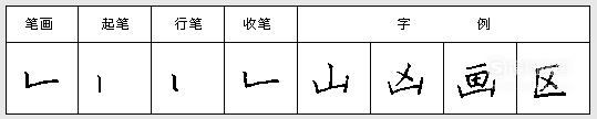 下笔写竖(有长、短之分),顿笔后向右写横,收笔较重。注意竖要直,横要平,一笔写成。