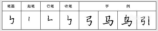 下笔写短横,略顿笔折向左下写短撇,不出尖,不要太长,再折向右写—小短横,最后折向下撇出,要出尖。