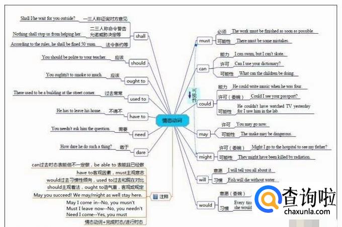 然后就是情态动词,本身虽有意义,但不完整,其表示说话人的能力、说话人的语气或情态,“可能”“应当”等。