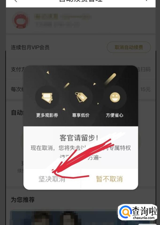 会弹出一个客官请留步的对话框,点击对话框左下角的坚决取消。如图所示。取消后,会弹出一个界面提醒你自动续费取消成功。