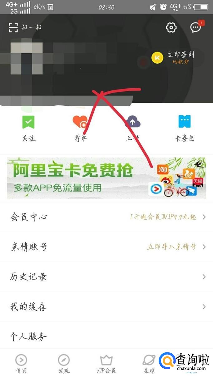 点击左上角的优酷注册的头像,如图箭头所示。会出现优酷会员的一个界面,如图所示。