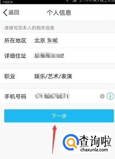 根据提示,输入“个人信息”,填写好之后,点击“下一步”;