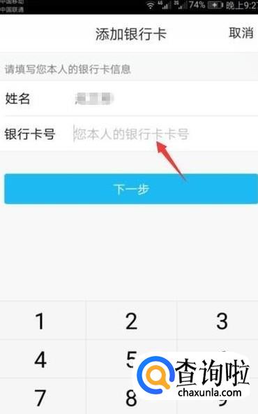 点击下一步之后,提示你输入银行卡号,即:你微信提现到的银行卡卡号;输入卡号之后,点击“下一步”;
