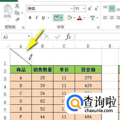 比如,下图中的表格,需要在A1单元格中从左上角到右下角插入一条分割线。