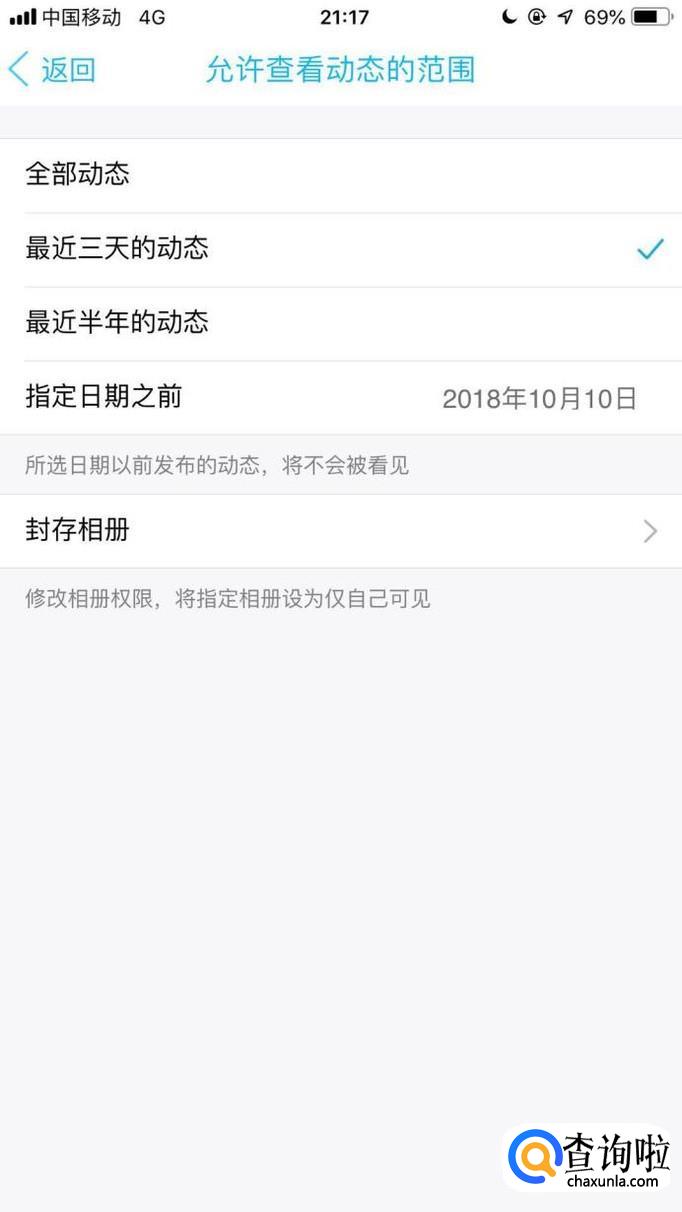 然后点击允许查看动态的范围,如下图所示。