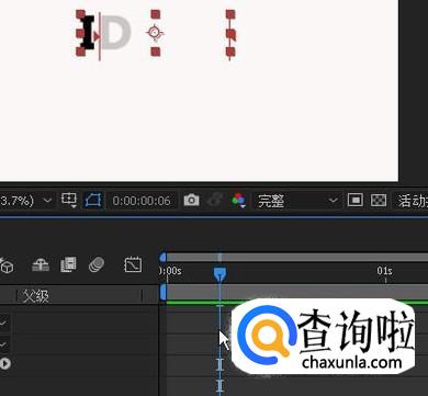 指针移到1秒位置上,再把“起始”参数设置为100;到这里K帧完成。按下空格键播放下小动画。可以看到,文字文字逐个出现。