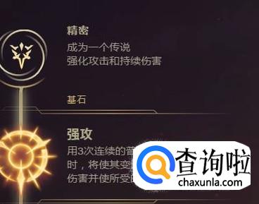 首先说一下这个英雄的符文选择上,在这里我推荐大家一定要选择精密的强攻,这个符文非常的适合这个英雄,其他只能说一般般了。