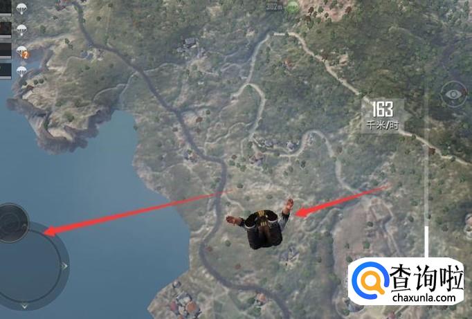 如果说你的目的地在飞机飞行航线的左边,那么你调整方向,以左上的角度进行飞行,把控制方向的按键拉到左上方。