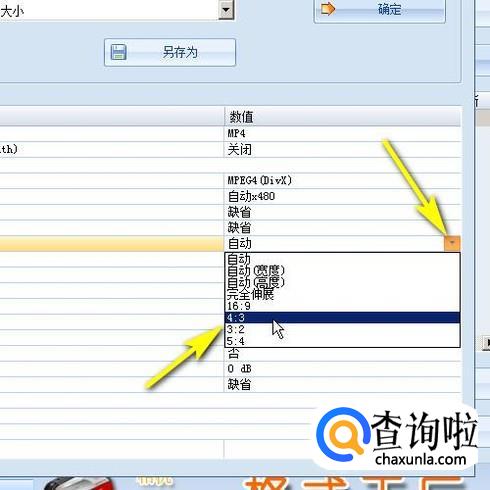 打开其设置界面。在宽高比这一项中点击一下,把下拉按钮显示出来。