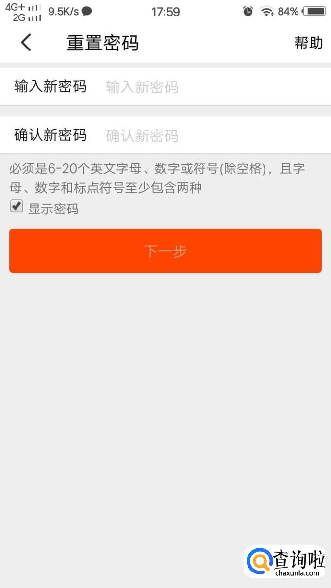 最后,输入你所收到的短信,验证码,点击下一步,再设置你的密码即可。