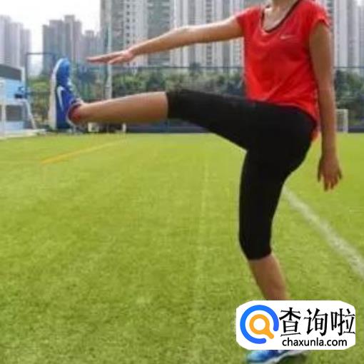 保持上半身直立,将腿往前上方踢起、踢到大腿与小腿后侧会略有紧绷的高度即可,尽量由大腿带动小腿和双脚,踢起时保持自然放松,左右交替踢腿5-10下,重复2-3次。