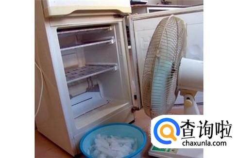 这个办法很是适合夏季,冰箱断电,打开门,将电风吹对准冰箱打开开关就不用管了,过段时间去看看,就会当发现冰箱里的冰霜已经全部融化。